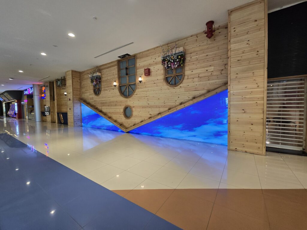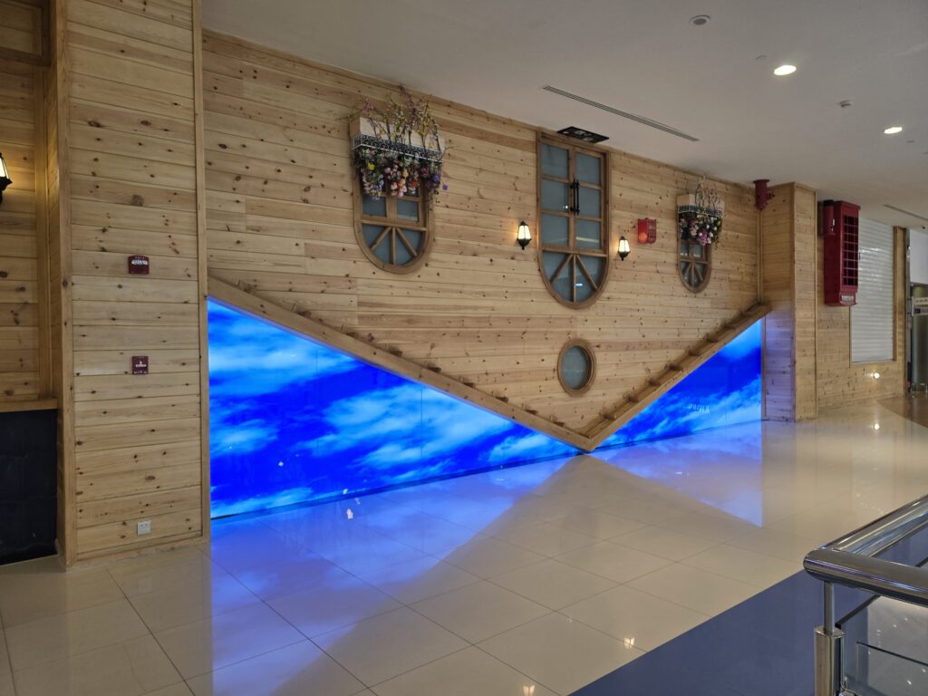 This project required more than a standard display — it demanded design innovation, precise engineering, and creative problem-solving. The centerpiece of the installation was a triangular LED screen seamlessly integrated into a wooden wall structure, blending technology with architectural elegance.